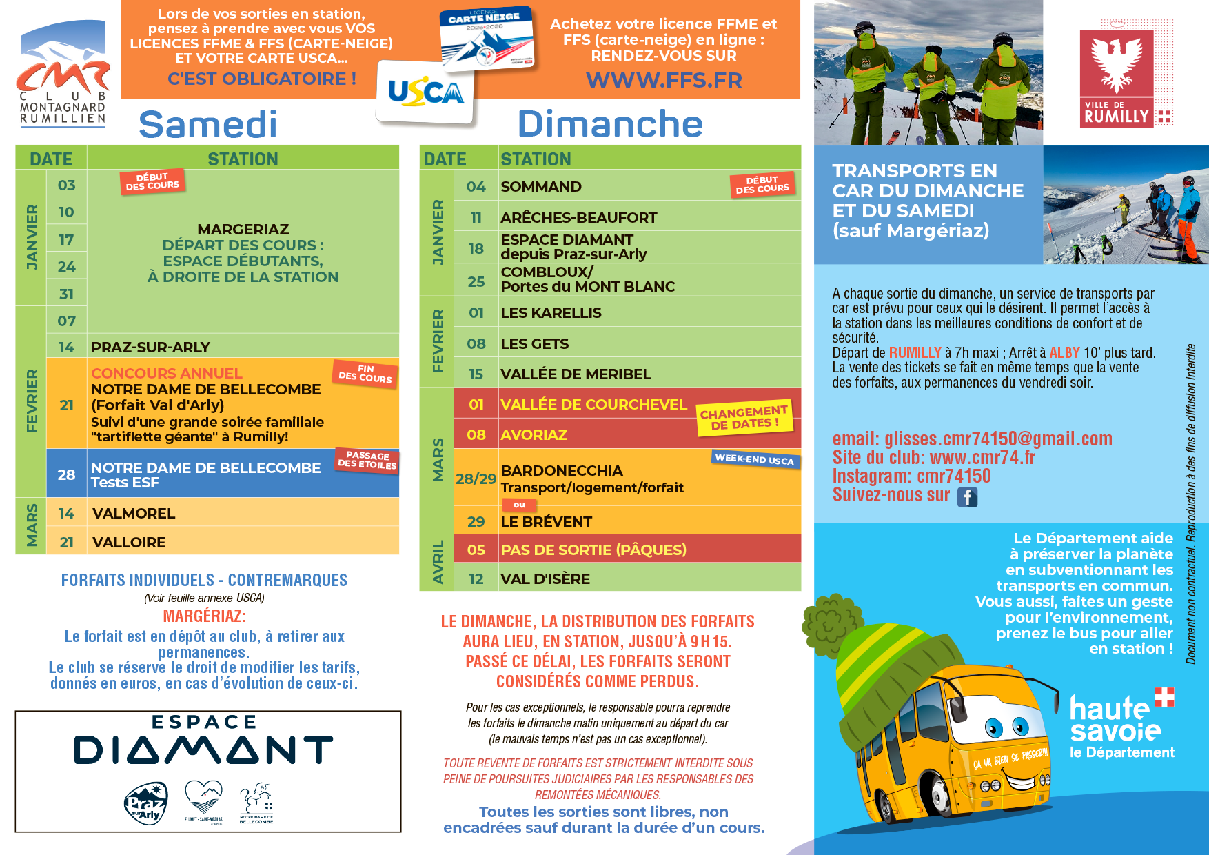 À partir de ce vendredi 30 janvier, vous pourrez prendre vos forfaits pour les deux week-ends suivants. Notez aussi les dates pour les inscriptions au concours et aux étoiles.